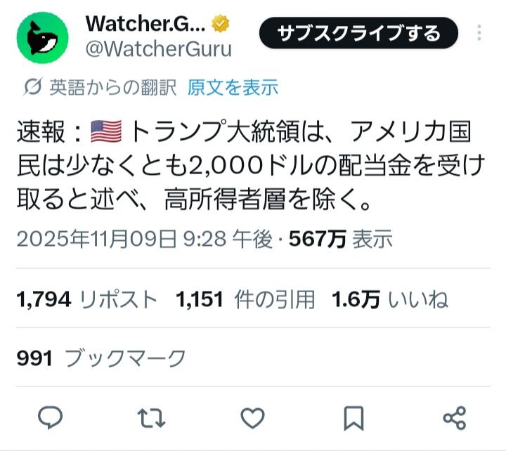 トランプ「関税で稼いだから国民に30万円配るわ」 2025年11月10日 1: それでも動く名無し 2025/11/10(月) 16:15:00.70 ID:JE8isbFe0 【トランプ「関税で稼いだから国民に30万円配るわ」】の続きを読む タグ :#トランプ#関税#30万円